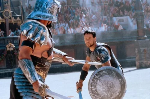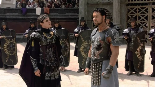 Режиссер: Ридли Скотт. В главных ролях: Рассел Кроу и Хоакин Феникс. Картина удостоена 5 премий Оскар, в том числе за лучший фильм и лучшую мужскую роль. Интересный факт состоит в том, что фильм снимался без готового сценария, так как к началу съемок просто не был готов.