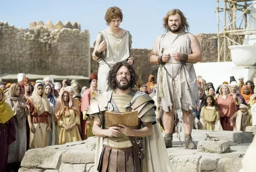 Но это, конечно же, не повод для уныния. Зед и Ох отправляются познавать новый для себя огромный мир, встречают на своем пути героев библейских притч и не устают каждую секунду влипать в забавные, а порой и опасные истории. Приключение становится еще более увлекательным, когда приятели натыкаются на затерянную цивилизацию и обнаруживают, что там держат рабынями двух их соплеменниц.