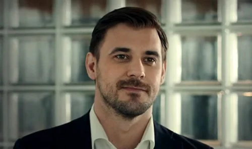 Всеми знакомый актер по сериалу "Чернобыль", "Метод", а также фильму "Ласковый май" (где он сыграл Юрия Шатунова).